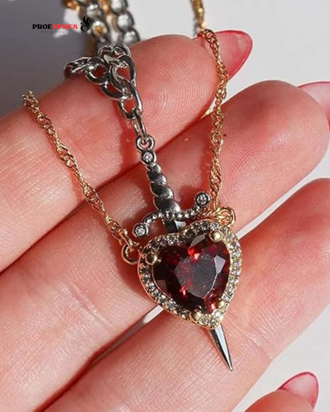 Expresa tu amor de una forma única con este hermoso conjunto de collares. La espada y el escudo simbolizan la fuerza, protección y el amor que se complementan a la perfección.